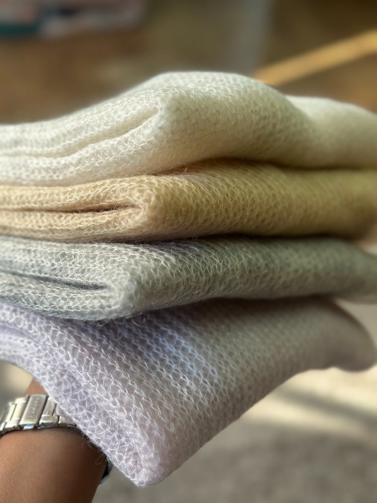 Durable and lustrous mohair, offering a silky sheen with lasting comfort.